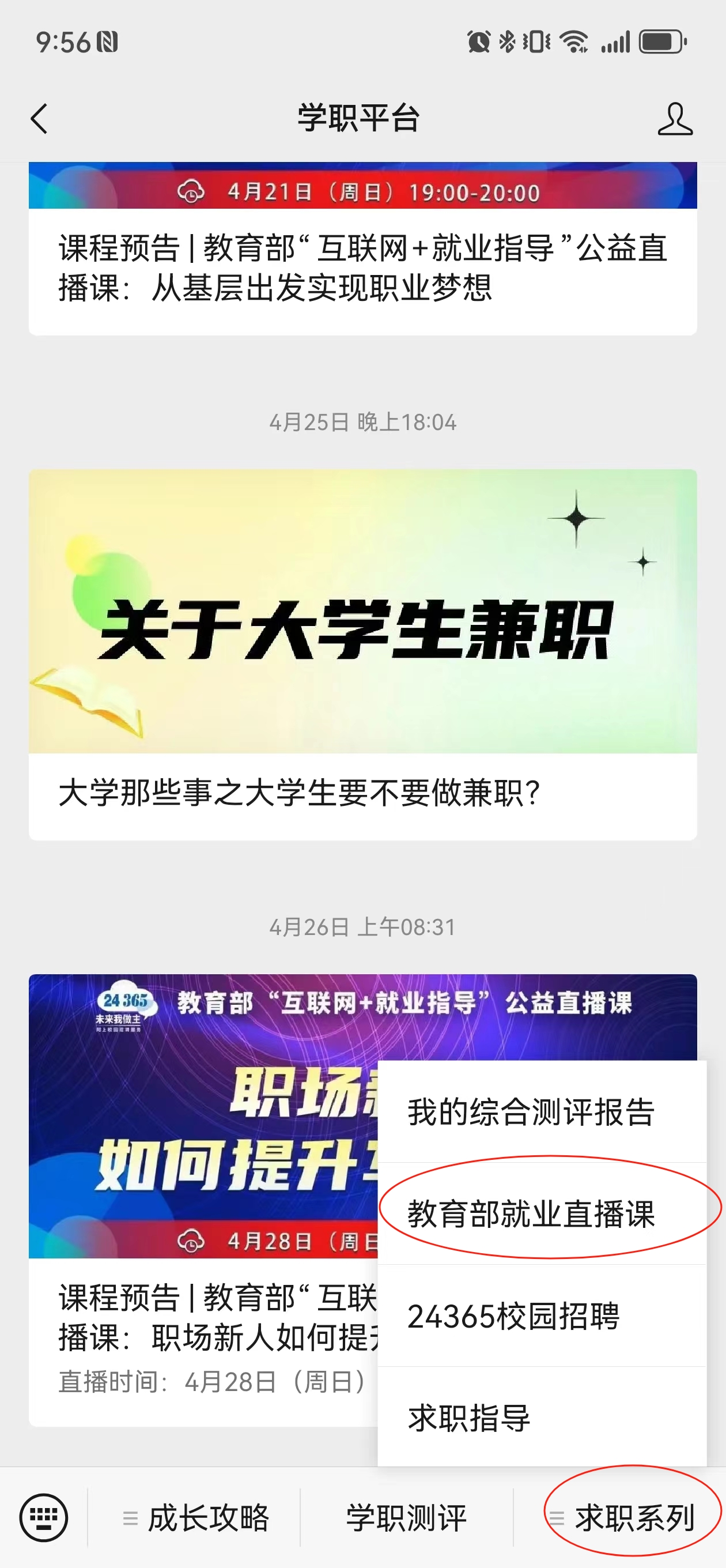 (4)微信搜索学职平台公众号选择学习内容。
